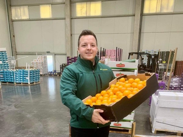 Edvin Kokojev descargando una caja de cítricos sudafricanos