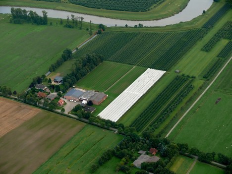 Vista aérea de la finca frutícola de Bohn en el corazón de la región de Altes Land.
