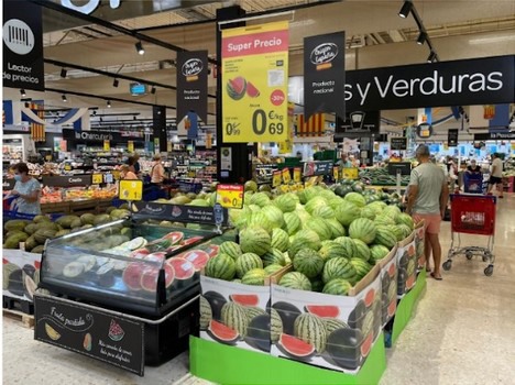 Carrefour, ha anunciado que baja el precio de sus sandías hasta el 27 de julio, "consciente de la importancia del precio para el consumidor". Los descuentos serán de hasta el 40% en varias referencias de sandías españolas. En concreto, manifiesta que aplica esta rebaja en la sandía entera negra Fashion y del 30% en la sandía entera rayada sin pepitas.