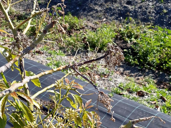 “Mientras antes afectaba solo a algunas ramas, ahora la muerte regresiva afecta a la mitad de un árbol y, lo más alarmante, está afectando, en mayor o menor medida, a la producción. Incluso vemos que los árboles pequeños se secan enteros. La muerte regresiva se produce por una familia de hongos llamada Botryosphaeriaceae, formada por más de 25 géneros que se ramifican en unas 1.500 especies. Todos ellos pueden producir enfermedad en diferentes frutas, como el aguacate, la vid o el nogal, y son de transmisión aérea”.