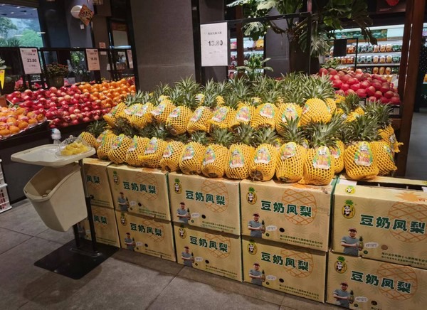 El precio de coste de la mano de obra, fertilizantes, plantaciones y transporte aumentó este año, lo que empuja el precio de la piña hacia arriba. "Tomemos como ejemplo la piña 'Leche de soja'. El precio de compra fue alrededor de un 30% más alto que el año pasado. El precio actual de venta al por menor de la piña 'Leche de soja' es de alrededor de 10-15 yuanes [1,47-2,21 USD] por 0,5 kg, mientras que el precio de venta al por menor de la piña de Filipinas es solo de alrededor de 4,5-6,5 yuanes [0,66-0,96 USD] por 0,5 kg. Sin embargo, a pesar de que nuestros precios han subido, nuestro volumen de ventas sigue creciendo. Esto muestra la popularidad de la piña 'leche de soja' en el mercado chino".