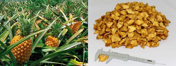 “El proceso del deshidratado se hace exclusivamente con aire caliente. La fruta se corta, se separa la piel de la pulpa y se introduce en los túneles de aire caliente para disminuir su cantidad de agua hasta conseguir un producto deshidratado de la mayor calidad”.