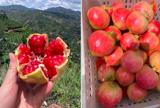 Qin también habla sobre las frutas de temporada que acaban de entrar en el mercado, como las granadas sin semillas. "Las granadas sin semillas entran en el mercado a principios de agosto. La temporada de producción comienza en agosto y continúa hasta finales de octubre. El sabor de las granadas sin semillas de esta semana es bastante bueno. Este año, están funcionando bien en términos de sabor, precio y movimiento de producto. El precio al por mayor es más alto que en esta época del año pasado. En los últimos dos años, algunos agricultores cosecharon sus granadas sin semillas temprano para obtener una ventaja en el mercado, pero la calidad del producto es pobre si se adelanta demasiado la cosecha, por lo que la respuesta del mercado fue terrible. La gestión de las plantaciones ha sido estricta este año y la mayoría de los agricultores ahora esperan hasta que las granadas alcancen su sabor ideal antes de cosechar la fruta".