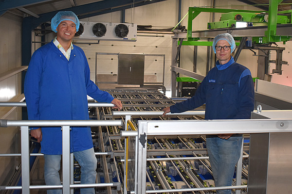 Derreck Bac y Eelco van Putten, de Van Putten Agro, junto a la clasificadora óptica