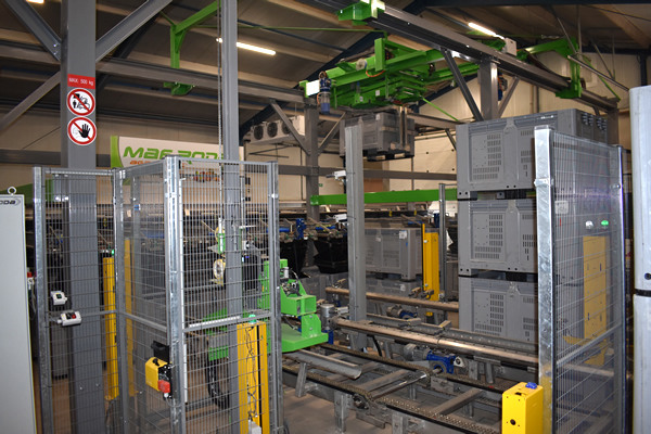 La zona de clasificación de las instalaciones de Van Putten es extraordinariamente silenciosa; no hay nadie cerca. Allí, las coles se clasifican por tamaño, forma y calidad externa. Los robots apilan las cajas con las coles clasificadas a tres alturas y las retiran automáticamente.