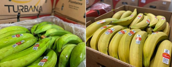 Arriba: bananas verdes de Ecuador y bananas maduras de Colombia. Abajo: yuca costarricense (Fotos proporcionadas por Giorgio Donnarumma)