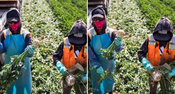 La temporada de apio local está en pleno apogeo para Babé Farms. Matt Hiltner, de Babé, dice que la cosecha de esta hortaliza requiere mucha precisión, atención a los detalles y, como se ve en la imagen, un cuchillo muy afilado.