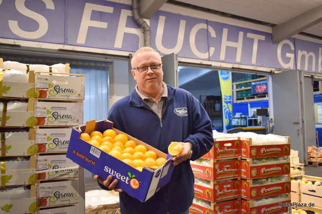 "La campaña sudafricana de cítricos se acerca ahora a la segunda mitad de la temporada. Las clementinas Orri de Sudáfrica (calibre 48) han estado llegando recientemente en cantidades cada vez mayores. El inicio de la temporada ha sido particularmente lento en el hemisferio sur este año porque los calibres populares han estado ausentes en gran medida", dice Dirk Stautmeister, gerente del puesto de BS Frucht & Co. en el mercado mayorista en Hannover.