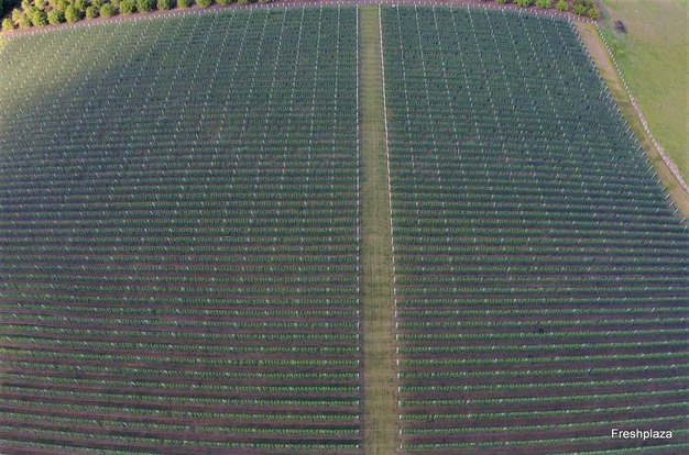 Vista aérea de una moderna plantación de tres años