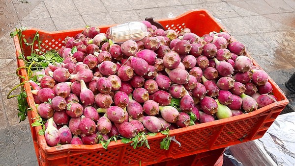 Pequeños higos chumbos de pulpa rosa en el zoco Souk el Had.