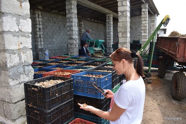 "No cultivamos avellanas, pero también usamos nuestras líneas de procesamiento de almendras para estos frutos secos. Procesamos una tonelada para un compañero productor y quedó muy satisfecho. Antes tenía 10 personas descascarando un 1 kilo cada una al día. Por tanto, obtenía 100 kilos al día. usando nuestra línea, podemos llegar a 1 tonelada sin problemas. El producto también se clasifica, así que se puede ofrecer a los compradores totalmente sin cáscara. Muchos productores están interesados en el cultivo de avellanas, pero carecen de líneas procesadoras. Nosotros podemos ayudar con eso. También compramos semillas de girasol a pequeños y grandes productores y las vendemos para la exportación. La cáscara se convierte en pellets para calefacción. No se desperdicia nada del producto".