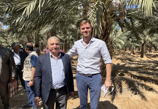Cedric van Oene (a la derecha) y Anwar Haddad, presidente de la Asociación Jordana de Dátiles (a la izquierda)