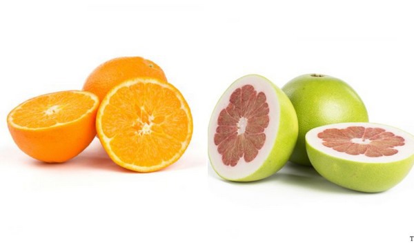 Izda.: naranjas Navel. Dcha.: pampelmusa