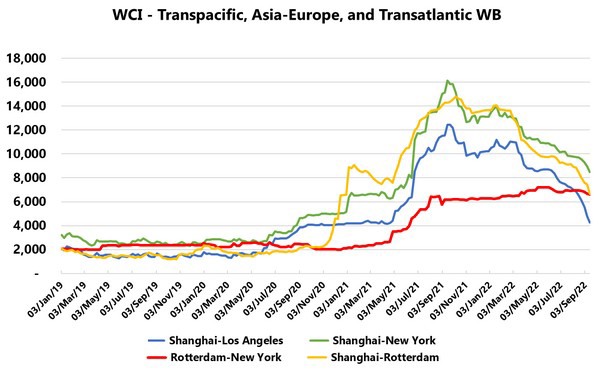 Si bien las tarifas de flete siguen cayendo en el Transpacífico y Asia-Europa, se mantienen firmes en el Transatlántico Oeste. La pregunta principal es por qué las tarifas se están sosteniendo; ¿por la oferta o por la demanda? En segundo lugar, dado que esto ofrece a los transportistas la oportunidad de ganar dinero en el comercio, al transferir capacidad al Transatlántico (como vimos con el Transpacífico en 2021), ¿esto inevitablemente causaría una presión a la baja en las tarifas transatlánticas?