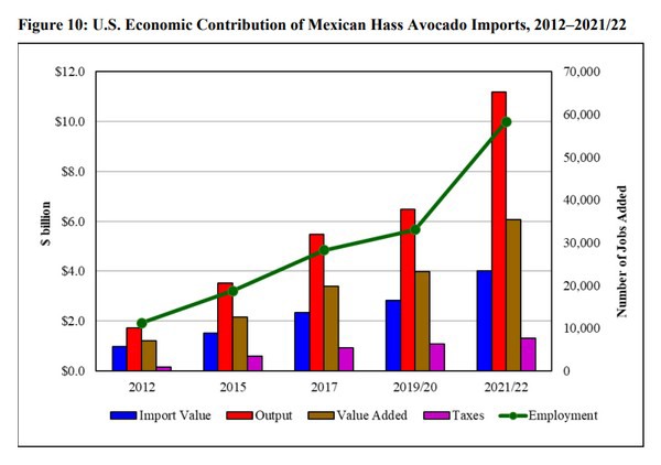El informe muestra las numerosas contribuciones de las importaciones de aguacates Hass mexicanos para la economía de EE. UU. Entre esas contribuciones se incluyen: