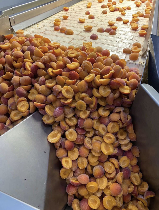 Las fresas siempre dan el pistoletazo de salida a la temporada. "Las recolectamos con uno o dos grados Brix más en comparación con las fresas para el mercado en fresco. Las fresas deben ser completamente rojas, sin que se vean partes verdes. Usamos la variedad Marmalade, que también suele presentar el precio más asequible. En verano, normalmente comercializamos unas 500 toneladas de fruta congelada, es decir, cargamos dos o tres camiones por semana. El verano es el período de mayor actividad, ya que realizamos cuatro actividades simultáneamente: el preenfriado, el congelado, el almacenamiento y la venta", continúa Julia.