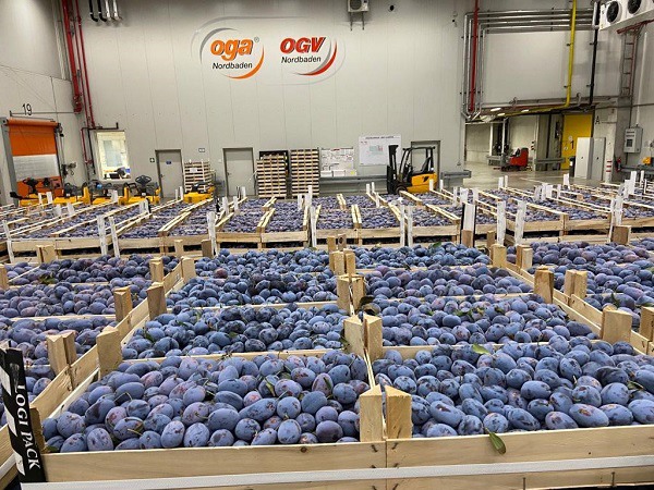La sala de carga de OGA/OGV con ciruelas de la variedad Stanley de Moldavia. Foto: OGA/OGV