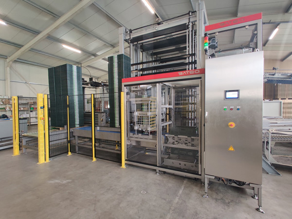 Recientemente, Bateq entregó una nueva línea de procesamiento a la empresa de cultivo de pimientos holandesa Paprikakwekerij C. Zwinkels. Con esta línea totalmente automatizada, C. Zwinkels es capaz de despaletizar, desapilar y desplegar las cajas plegables de forma totalmente autónoma y transportarlas hacia la unidad de clasificación, donde las cajas se llenan con producto. A continuación, las cajas llenas se vuelven a apilar y paletizar.