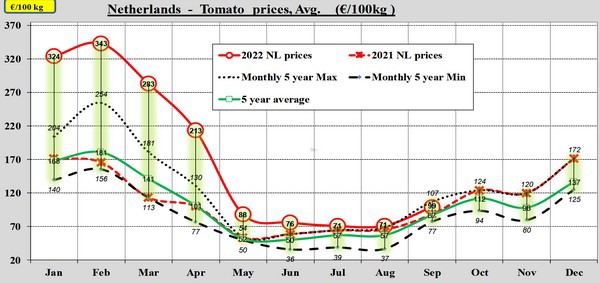 La reducción de los volúmenes de producción se debe a los altos precios de la energía y el cambio continuado a variedades de tomate (cherry) más finas.