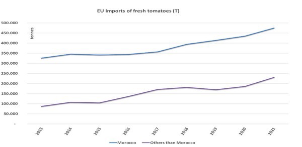 Las importaciones de tomate de Marruecos van en aumento. Haz clic aquí para ampliar la imagen.