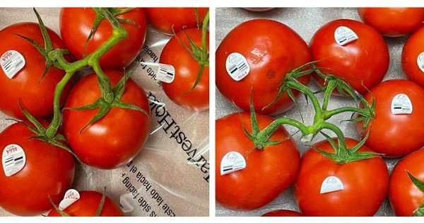 Izda.: caja de tomates tratada con HarvestHold Fresh. Dcha.: caja de tomates sin tratar.