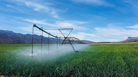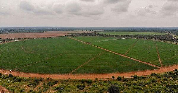 Un campo de cebollas con sistema de riego por pívot en la provincia de Limpopo