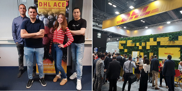 Izquierda: El equipo de carga aérea de DHL ACE. Derecha: El stand de DHL en Fruit Attraction