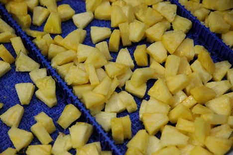 "El mayor interés sigue girando en torno al procesamiento de la piña: pelado, descorazonado y corte en trozos, listos para ser embolsados o envasados en bandejas. PND da una respuesta al sector procesador en los mercados internacionales y hace dos años puso en el mercado una nueva máquina multifuncional dedicada al procesamiento de piña", explica Virginia.