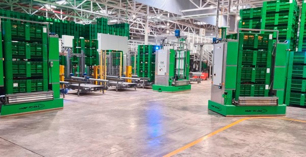 Estos vehículos autónomos, que presentó la multinacional en la pasada edición de Fruit Attraction de manera oficial, son un gran paso adelante en automatización. Estos vehículos, que sustituyen a las carretillas elevadoras, tienen una alta capacidad de producción y están especialmente diseñados para el sector hortofrutícola cubriendo así sus necesidades específicas. Una de las características especiales son sus pinzas de sujeción de cajas y bins adaptables. Además, su capacidad de realizar microrrecargas mientras está en funcionamiento les proporciona una gran autonomía para trabajar de forma constante durante las largas jornadas de producción.