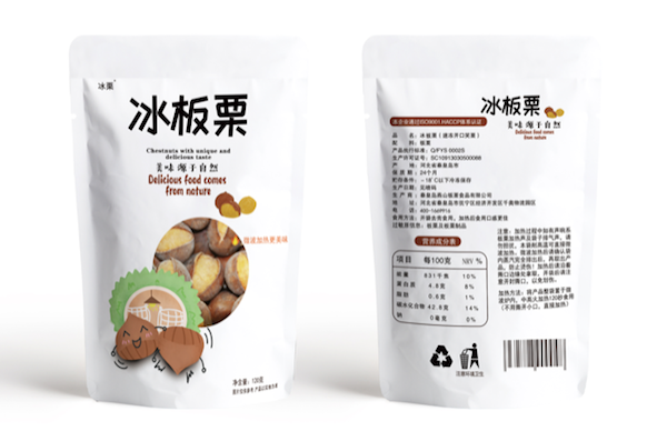 Al referirse a sus envases, Yue indica: "Nuestros envases se dividen en dos tipos, uno para las castañas enlatadas a temperatura ambiente, en el que el alimento es esterilizado a alta temperatura y envasado con nitrógeno. El otro es para el producto congelado, en el que tenemos envases para el producto a granel y al por menor. El nuevo producto lanzado en esta etapa trae 120 gramos de castañas ultracongeladas especialmente envasadas para hornos microondas, que son muy prácticas de consumir".