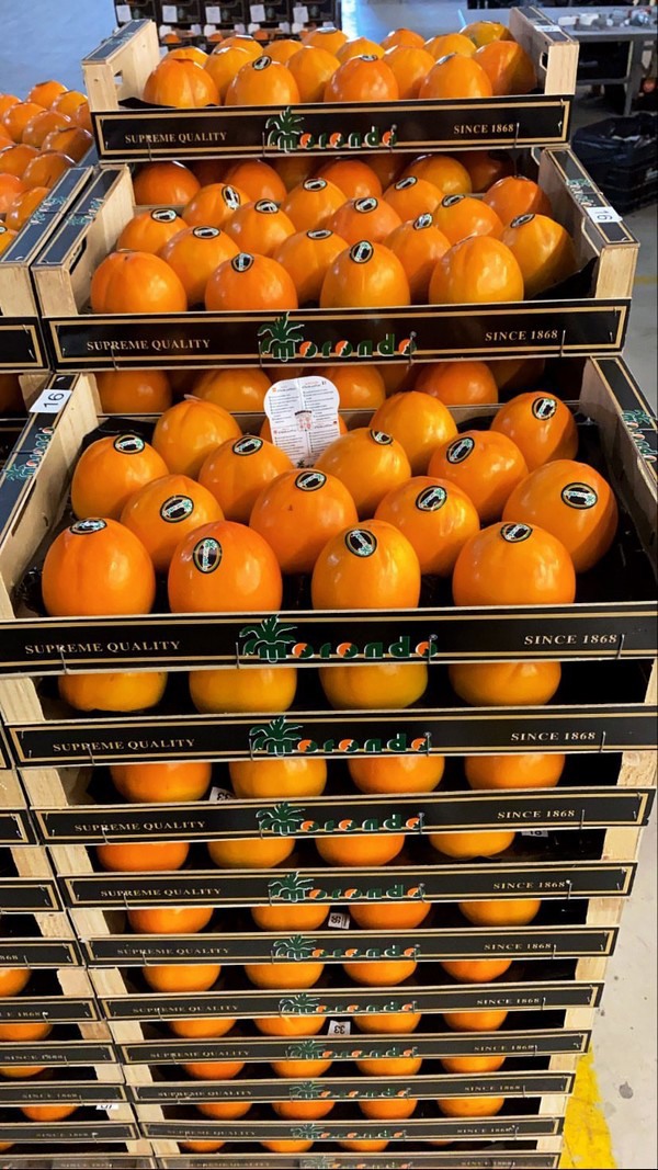 Con sede en La Granja de la Costera y 5 puestos en el Mercado de Xàtiva, Morondo S.L. lleva 30 años produciendo y comercializando kaki Persimon, que vende “por todo el mundo”, indica Fernando Martí. “Trabajamos con diferentes cadenas en toda Europa y exportamos contenedores a diferentes destinos como Canadá, Emiratos, Hong Kong o Malasia; el año pasado hicimos unos 40-50 contenedores. Pero esta campaña, con la caída de la producción, ha resultado más difícil atender a todos lo clientes, especialmente en ultramar, y se ha primado el envío de fruta al mercado europeo”.