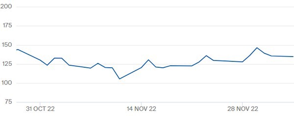 El índice TTF del precio del gas para enero de 2023 se situó el martes por la mañana en 138 euros. Para todo 2023, el precio el martes oscilaba entre 135 y 140 euros. Haz clic aquí para consultar las cifras.