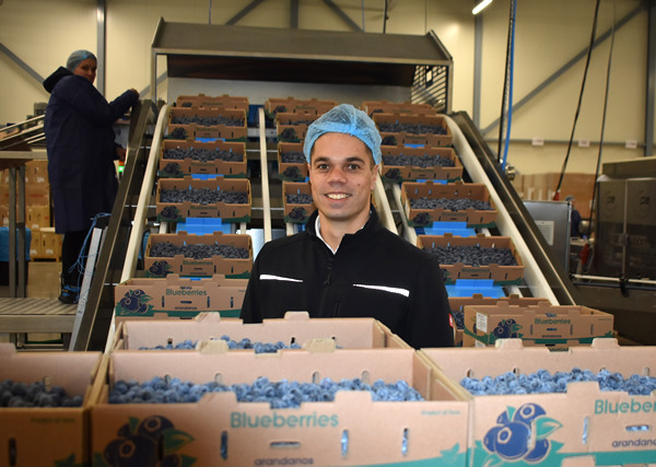 "Los arándanos me hacen muy feliz, sobre todo cuando veo que las tres máquinas de nuestra nueva estación de envasado funcionan a plena capacidad y los arándanos son perfectamente clasificados y envasados", dice Barry Bondt.
