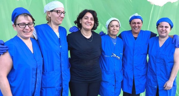 Anita Pacia y el equipo de envasado de las castañas italianas ready-to-eat de Trucco en Avellino, Italia.
