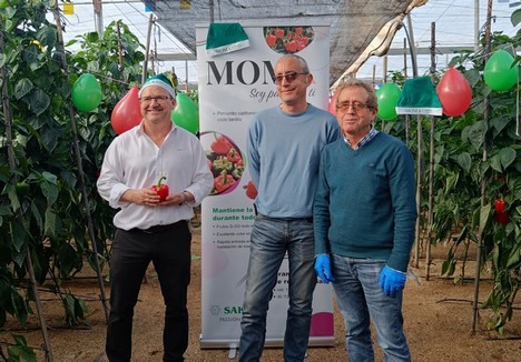 Sakata ha presentado hoy en sociedad a Moma, la última novedad que viene a completar su gama de pimientos creados para el agricultor de Almería. En la jornada de campo con toques navideños a la que han asistido cerca de 200 personas, tanto agricultores como técnicos y prensa han podido conocer de primera mano todas las características de esta nueva variedad para ciclo tardío que complementa a Sibac, el temprano y Juma, para ciclo medio.