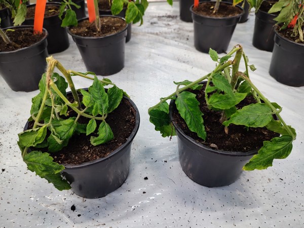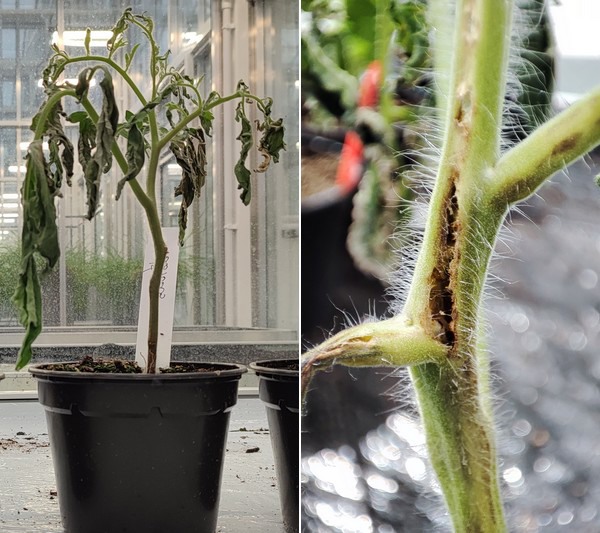 Todo el mundo habla del virus rugoso del tomate; al fin y al cabo, las soluciones son limitadas y puede resultar particularmente devastador para la cuenta de resultados del productor. Esto no significa que el resto de patógenos nocivos se mantengan a raya. Existe uno en particular para el que no se ha hallado solución todavía. Se trata de Clavibacter michiganensis. "Los síntomas principales son el marchitamiento de las plantas, la aparición de manchas negras en los frutos y el desarrollo de cancro en los tallos de las plantas", detalla Eleni Koseoglou, que obtuvo su doctorado con su tesis sobre cómo desarrollar variedades de tomate resistentes a Clavibacter. "Las hojas se marchitan y mueren. En general, Clavibacter es muy destructivo".