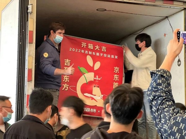 El equipo de Garces Fruit recibiendo los primeros contenedores del mercado en China.