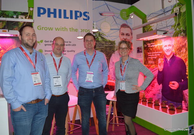 El equipo de Signify con el productor Arno Loos, que cultiva sus fresas con luz artificial este invierno.
