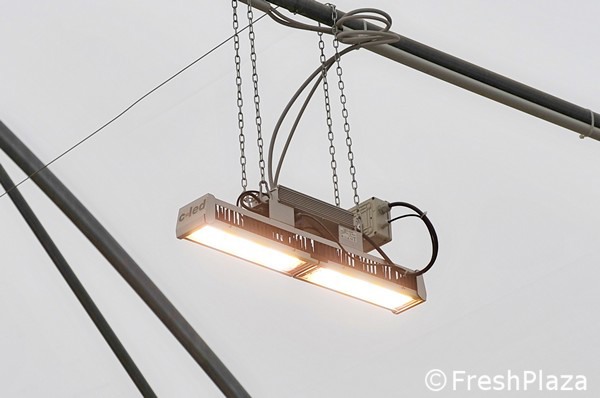 Detalle del sistema de luz proporcionado por C-Led, en el invernadero