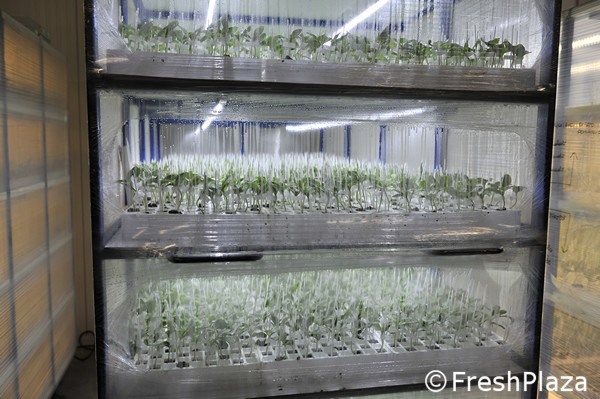 "Nuestra empresa fue fundada hace unos 20 años para la producción de plantas hortícolas y frutales. Desde entonces las cosas han cambiado mucho y hoy tenemos una producción anual de alrededor de 600 millones de plantones, de los cuales el 25% se exporta. La referencia más constante es el tomate industrial, seguido de la achicoria", dice el propietario Roberto Boscolo Bacchetto.
