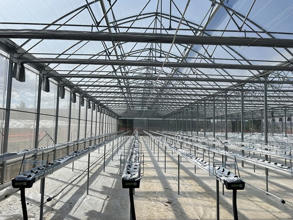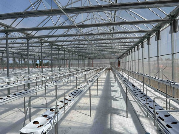 Este tipo de invernadero, junto con el método de cultivo, permite gestionar la intensidad lumínica a través de pantallas sombreadoras motorizadas, posicionar las plantas en canalones a una altura óptima para la intervención de los operadores y regar las plantas mediante un sistema de irrigación por goteo y nebulización por encima y por debajo del follaje.