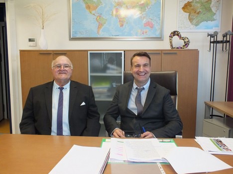 A la derecha, Stéphane Buffat, CEO, junto a su padre Philippe Buffat, fundador de PSB Producción Vegetal.