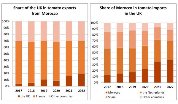 Además de Marruecos, los principales países proveedores de hortalizas a Gran Bretaña en invierno solían ser los Países Bajos y España, pero después del Brexit, el comercio con los países de la UE se volvió mucho más complicado. Al mismo tiempo, Marruecos demostró su competitividad gracias a la mejora de la logística, que permitió cubrir rápidamente la escasez de tomates en el mercado británico, y los importadores empezaron a confiar más en los proveedores marroquíes.