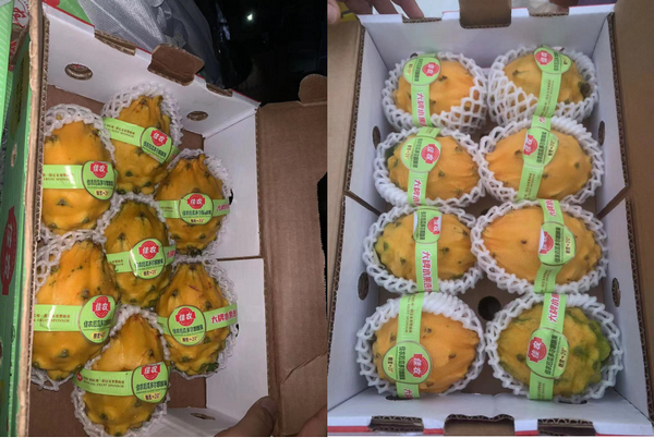 La pitahaya amarilla ecuatoriana, recién llegada al mercado, se vende en diferentes tamaños de 2,5 kg/caja, 6-7-8 piezas/caja y el precio actual al por mayor es de unos 300 ¥ por caja.