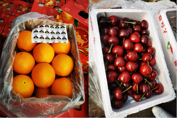 Izquierda: naranjas nacionales. Derecha: cerezas de Dalian.