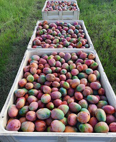 Derecha: mangos Keitt recién cosechados.