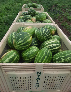 Derecha: también plantan periódicamente sandías, coles y calabaza Hubbard.