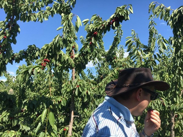 Rob Borley en una plantación canadiense de cerezas.