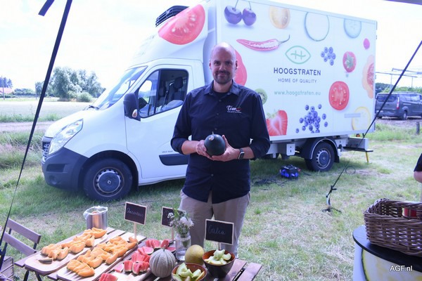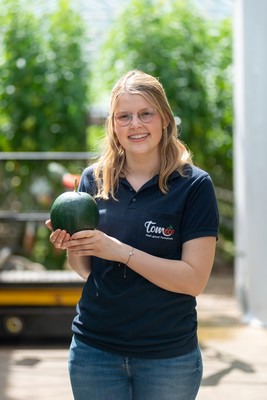 Tomeco, una colaboración entre varios productores, incluidos Hortipower, VW Tuinderijen, VW Maxburg y Tomato Masters, entrega sus cosechas a la cooperativa y subasta belga Coöperatie Hoogstraten. El cultivo más importante sigue siendo el tomate, pero hace unos años ha surgido un nuevo proyecto, el cultivo de sandías que se comercializan bajo la marca Tomelon. "El cultivo de sandías se combina bien con el de tomates. La idea surgió en 2020 y establecimos un cultivo de prueba en 2021. En los años siguientes, aumentamos la superficie, notando que el tamaño y el sabor dulce de las sandías eran apreciados por los consumidores. Después de una buena temporada 2022, hemos ampliado nuevamente la superficie cultivada este año", explica Tom.