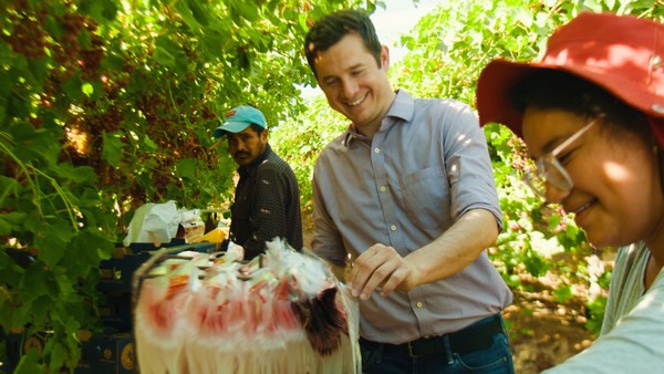 El fundador y CEO de ProducePay, Pablo Borquez Schwarzbeck, en los campos con productores.